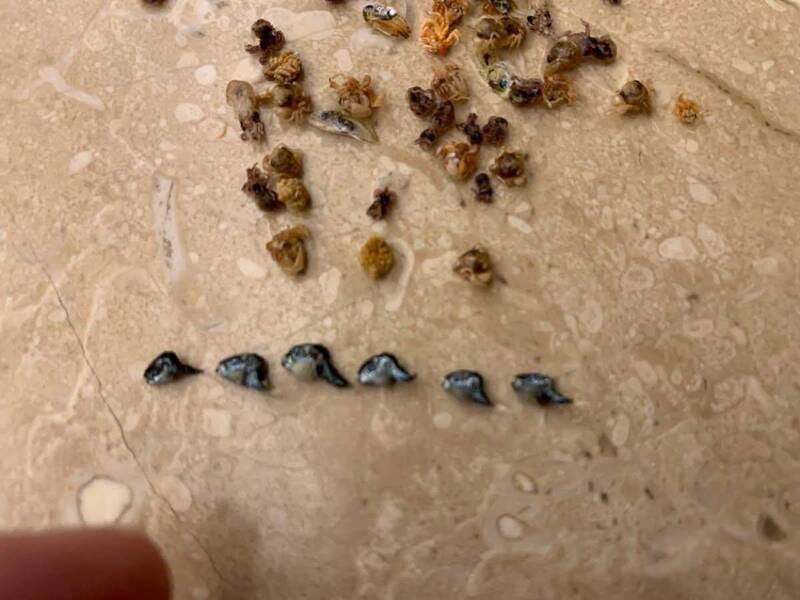 根據原PO貼出的照片可見,除了數隻比小指指截還小的河豚外,這批小魚乾還有許多小型魷魚、章魚、貝類等海洋生物混雜。