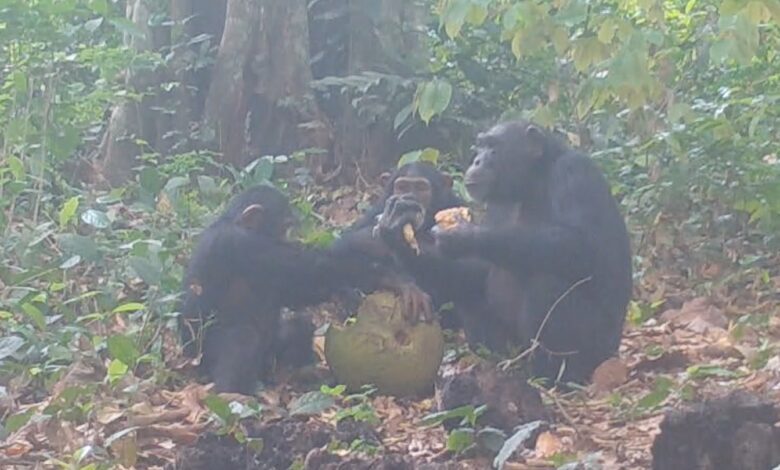 在西非幾內亞比索的坎坦赫茲國家公園,研究人員首次以自動攝影機拍攝到野生黑猩猩食用並共享含有酒精的發酵水果,這一觀察結果於 2025 年 4 月 21 日發表於《Current Biology》期刊。這些猩猩食用的是非洲麵包果,經發酵後內含乙醇(酒精),其中最高濃度達 0.61% 酒精濃度(ABV),雖遠低於啤酒(約 5%)與紅酒(約 13.5%),但鑑於黑猩猩飲食中水果佔比可高達 85%,累積攝取量可能不容小覷。