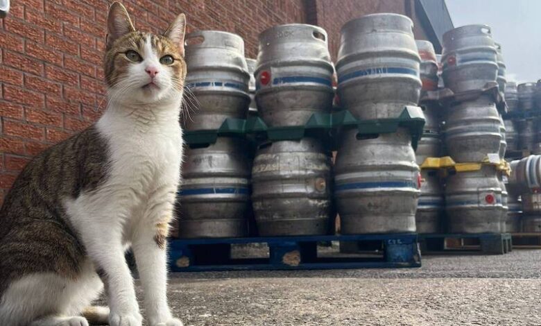 名為「花生」的虎斑白底貓咪連續從家中消失,每次都在離住家約53公里的釀酒廠被尋獲。(圖擷取自「Castle Rock Brewery」臉書粉專)