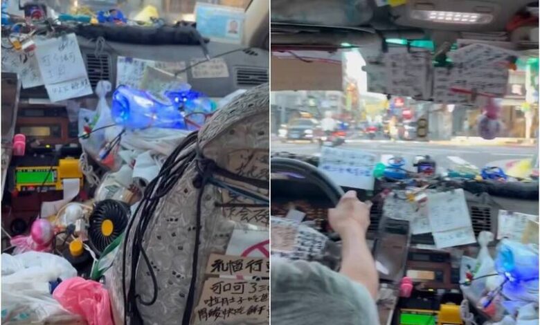 1名網友近日分享,他與母親隨手攔了一台計程車,孰料上車後才發現車內空間擺放大量雜物、且貼滿紙條,心有餘悸之下錄製影片後上傳至社群平台,貼文曝光後引發不少網友議論。