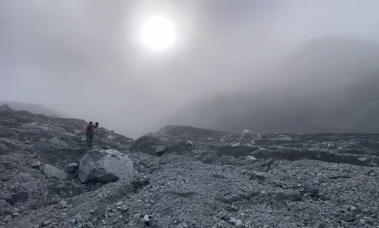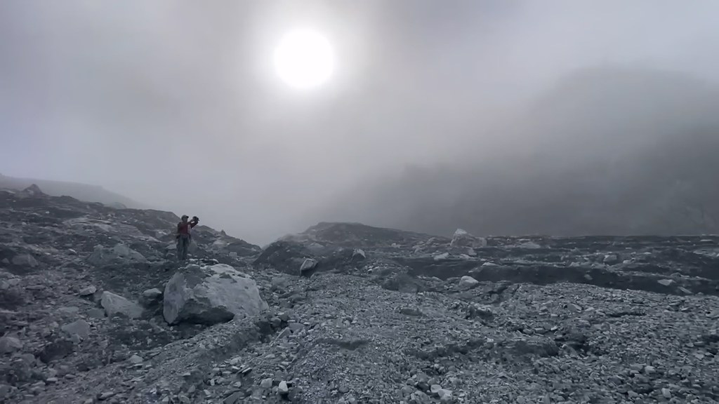 與一般登山不同,特遣隊必須在毫無山徑的區域中自行開路,沿途環境險惡:崩塌、厚層泥流、陡峭且鬆軟的土質隨處可見,還得倚靠繩索垂降、徒手攀爬或攀附樹根通過,稍有不慎就可能滑落。接近堰塞湖區域時,地面與樹葉上覆蓋厚厚粉塵與泥砂,空氣中灰白瀰漫,畫面彷彿進入另一個荒蕪世界。