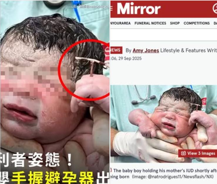 巴西一家醫院日前迎來新生兒,特別的是母親2年前就裝了避孕器,避孕機率高達99%,沒想到這名男嬰卻能成功誕生,出生時手上甚至還握著那個避孕器,接生的醫生拍下照片上傳網路後,全球暴紅;不過婦產科醫師指出,寶寶跟避孕器雖然都在子宮內,但之間還隔了一層強韌的羊膜,寶寶不可能穿透羊膜去抓到避孕器,那張照片應該是擺拍的。