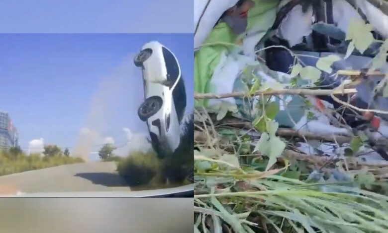 許多人用路時,不管是開車、騎車、走路都要小心路況。江西景德鎮一位男子開車時,發現對象的邊坡突然飛來一輛小客車,落地時直直撞上一個廣告招牌而停下,最高曾經飛到距離地面4公尺高,警消趕到後也馬上進行相關處理,幸好沒有人有生命危險,不過事故原因尚不清楚,影片曝光後引發熱議。