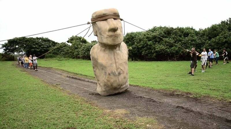 復活島數百座巨大摩艾石像如何搬運,長期困擾考古學界。美國研究團隊透過3D建模與實地實驗,證實古代拉帕努伊人(Rapa Nui)用繩索讓石像以搖晃方式「行走」前進。研究團隊建造一座4.35噸的摩艾複製品,僅用18人就在40分鐘內移動100米