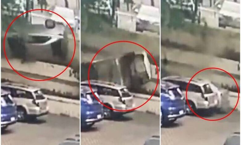 這起事故發在首都聖地牙哥拉斯孔德斯區,現場畫面監視器畫面顯示,有輛轎車突然衝出路面撞破護欄,下秒翻滾一圈,順勢掉到高度相差約5公尺的停車場,停進唯一空位,如此恰巧的情景讓網友驚呆。