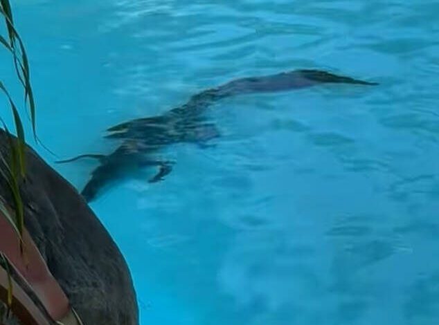 社群媒體上流傳的影片顯示,這隻年幼的食肉動物躺在道格拉斯港喜來登幻影大度假村(Sheraton Grand Mirage Resort)的泳池底部。TikTok用戶麗莎.凱勒(Lisa Keller)在影片中說:「我不想驚動任何人,但喜來登的泳池裡有隻鱷魚。」