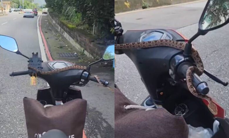 女子騎車突覺手癢……「蛇」從天降盤據機車龍頭畫面曝