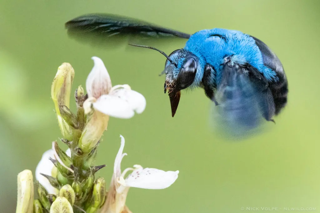 藍木蜂不具有攻擊性。(圖片來源:Nick Volpe,經由iNaturalist CC BY-NC.)