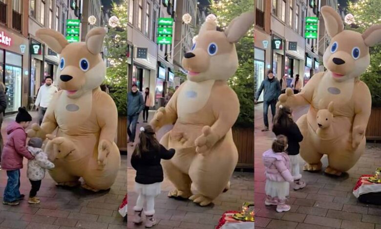 近來外國社群瘋傳一段影片,為1名網友民眾日前外出經過一處市集時,看到1個身穿「袋鼠親子」造型人偶裝的街頭藝人,正不斷與路過的孩童互動,但他駐足觀看一陣子後發現,這套人偶裝某個「特殊設計」似乎「很母湯」,於是將互動影片PO到上網,結果迅速在全球爆紅,「母湯畫面」也湧入大批網友歪樓留言。